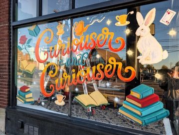 Commercial and residential window design pricing is as individual as you are. Window splash paintings are done on the exterior of the window, using acrylic house paint, which is temporary, yet durable. The design will remain intact unless removed with hot water and a razor scraper. Hand painted window splash ads bring more attention to your business better than a typical vinyl sign.
